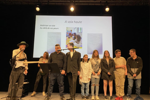 Dans le cadre d’un tout nouveau partenariat, un projet slam a été mené avec les adolescents et jeunes adultes de l’Institut Médico-Éducatif La Roseraie à Jussy. Deux ateliers, répartis sur deux demi-journées, ont été animés par l’auteur Mouloud J, autour de la thématique « Tenir tête aux étoiles ».